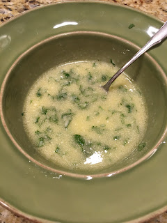 At 5:30, I began to prepare dinner. I marinated a flank steak last night in olive oil, lemon juice, onion, garlic, cilantro and mustard powder. I also took 3/4 cup of the basic mayo I made last night and mixed it with cilantro and garlic to make a cilantro-lime mayo.
